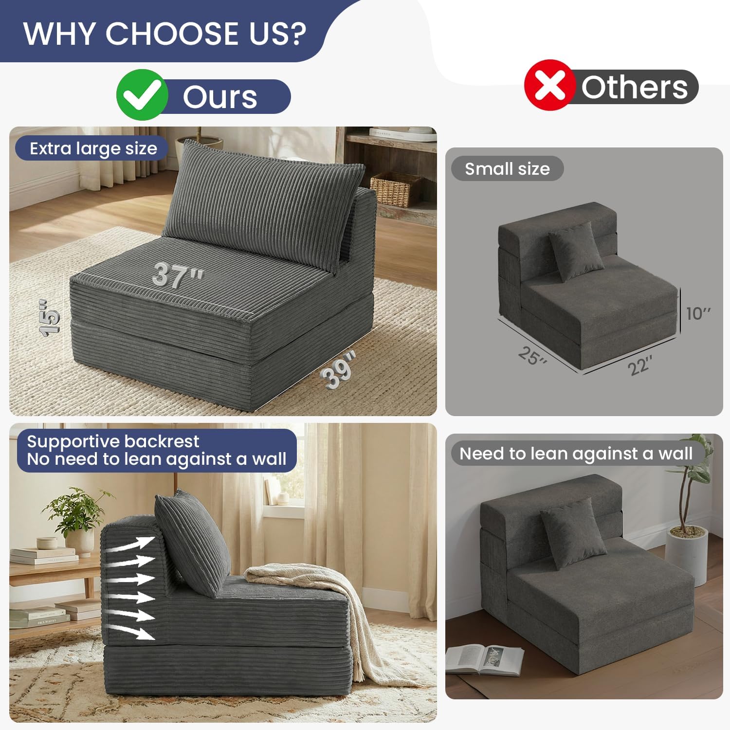 | Material Features | High-density, supportive, and durable foam |