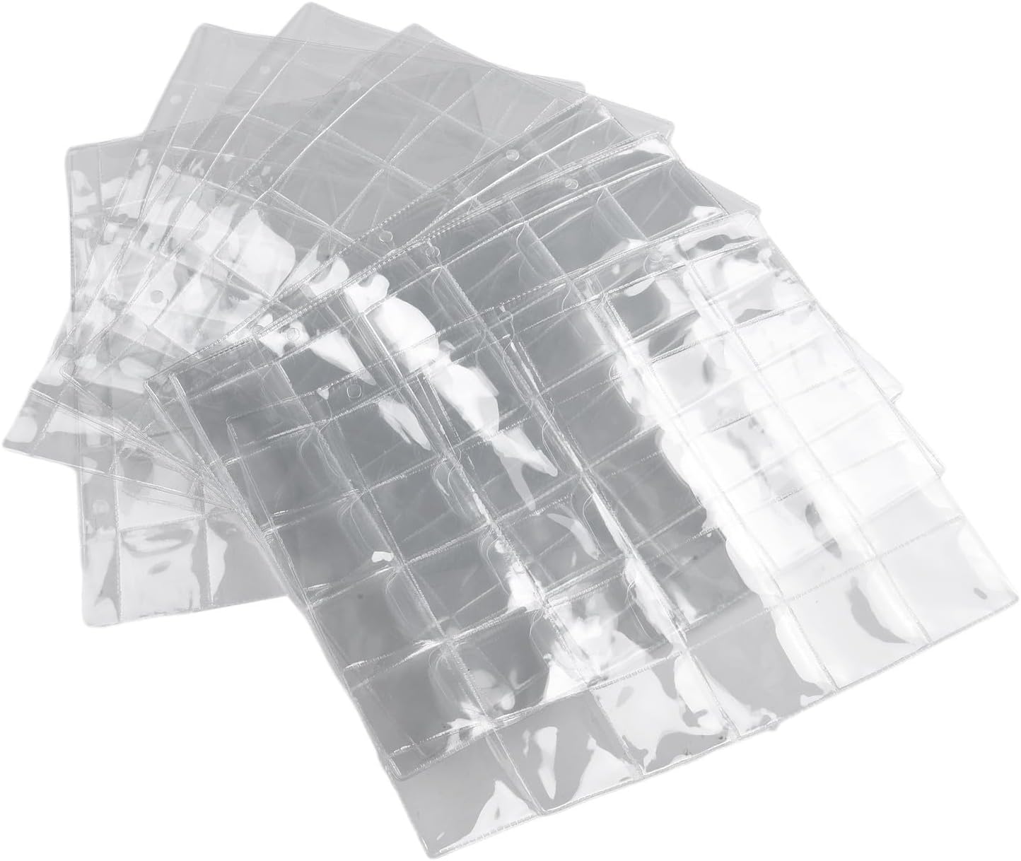 Product description Features:*30 Pockets Plastic Coin Holders: Each page has 30 pockets, with 5 pockets horizontally 6 pockets vertically. It provides ample space for collecting , tokens, medallions, and badges with a diameter less than 32mm.*High-Quality Material: Made of and transparent plastic material, these coin holders for ensure long-lasting for protection for your valuable . The transparent design allows for easy visibility and display.*Convenient Page Size: The page size measures approximately 20cm x 25cm (7.87 x 9.84), providing a compact and organized storage solution for your coin collection.*Secure Coin Storage: Each pocket has a size of 35*37mm, perfectly fitting smaller than 32mm. The secure pockets keep your in place and them from scratches and damage.*Package Includes: This set includes 5pcs of 30 pockets coin holders, offering you ample storage options for your expanding coin collection.Specifications:Name:Coin HolderMaterial:PlasticSize:20cm 25cm/7.87" x 9.84"Color:TransparentPackage Content:10 PCS for protection cover Manufacturer Contact Information no